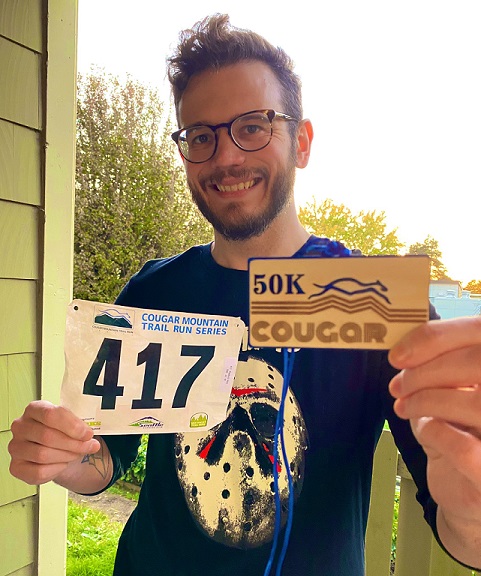 After completing three marathons, one in 2022 and two in 2023, I sunk deeper into distance running culture and started catering my social media experience as such. I started following ultra runners like Andy Glaze and Sally McRea for inspiration. I hadn’t considered doing an ultramarathon until I learned that my old college advisor from SOU, Allison Burke, has been doing ultras over the last few years. I always admired and looked up to her–she was the reason I picked my major. That said, I saw these pro runners doing 100 and 200-mile races and thought, “maybe someday in a few years I can pull that off, but not now.” Then I learned that anything above the 26.2 miles of a marathon was considered an “ultramarathon,” and I was sold. A 50K is 31.07 miles–a mere 5 miles more than a traditional marathon. What a perfect stepping stone! So, I started looking for a race I could try out, and eventually landed on the Cougar Mountain Trail Run 50K.